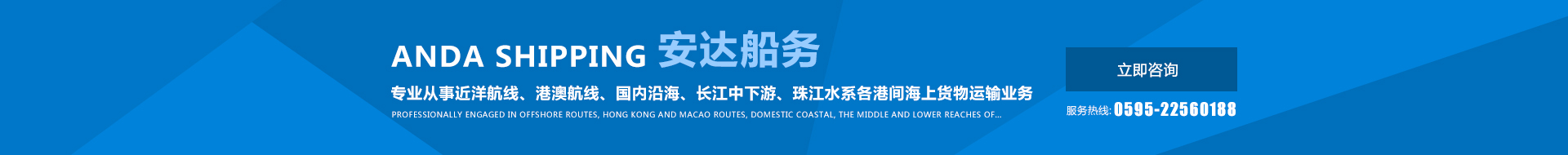 福建安達船務(wù)有限公司(FUJIAN ANDA SHIPPING CO.,LTD)成立于一九九二年,企業(yè)類型為有限責任公司,法定代表人:陳其泗,注冊資本人民幣貳仟萬元,統(tǒng)一社會信用代碼:91350521156221168Y,水路運輸許可證:交閩XK0184。公司現(xiàn)有CCS入級散貨輪4艘,總運力8.2萬噸,船舶技術(shù)狀況良好。公司管理制度完善,組織機構(gòu)健全,擁有一個專業(yè)、穩(wěn)定的管理團隊。公司按照 NSM規(guī)則建立了安全管理體系,在船岸保持有效運行,并通過海事局審核取得了NSM規(guī)則的符合證明。